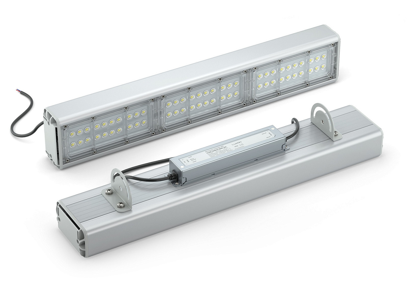 Дополнительно в комплектацию светильника промышленного светодиодного может входить герметичный соединитель и кронштейны на 3-5 штук.