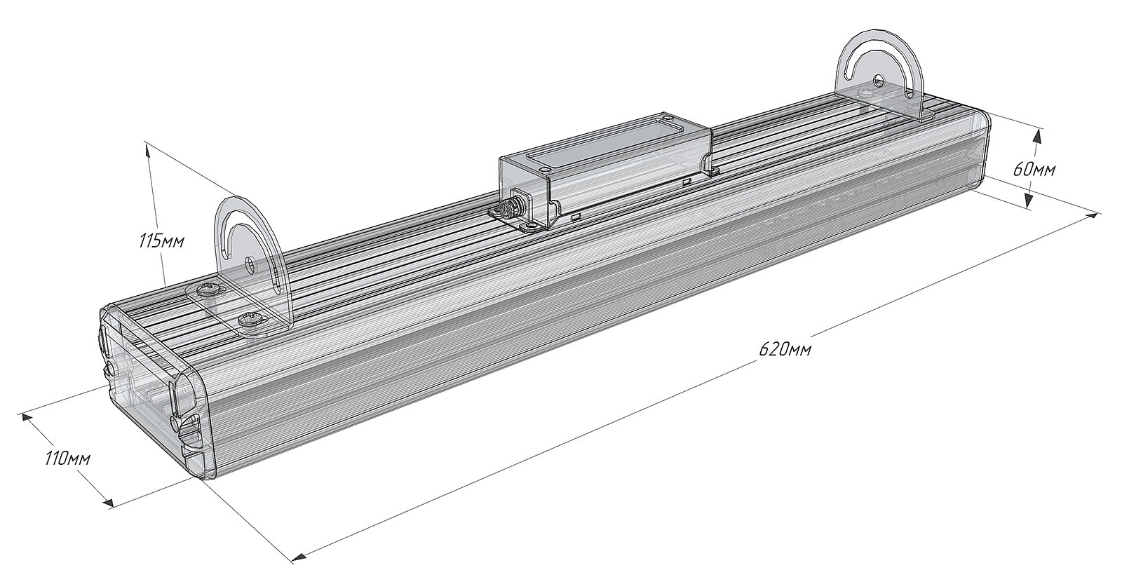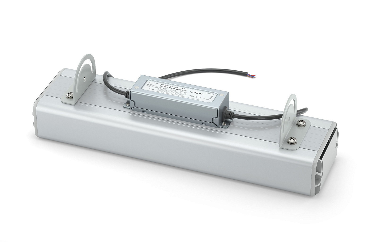 Дополнительно в комплектацию светильника промышленного светодиодного может входить герметичный соединитель и кронштейны на 3-5 штук.