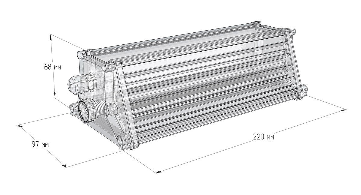 Промышленный светильник универсальный: светодиоды 2835 (до 170лм/Вт) и 3030 (до 220лм/Вт), БП с защитами от 380В, грозы, импульсов до 4кВ (от 50Вт), корпус из анодированного алюминия, стекло из поликарбоната с УФ защитой (КСС Д 120гр) или микропризма (КСС Г 70гр). Наличие модификации с блоком авариного питания на 3 часа автономной работы. Возможность объединения группами до пяти штук на 500Вт. Опциональное консольное крепление.