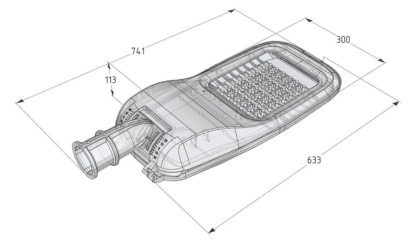 Уличные консольные светильники в литом корпусе из алюминия с регулируемым кронштейном: LEDs 3030 (до 220лм/Вт), блоки питания с защитами от 380В, грозы, импульсов до 4кВ, замена источника питания на месте, широкая КСС, линза из ПММА, защитное закаленное стекло, разъем NEMA (опция) с АСУНО. Подходит под требования МОССВЕТ и ЛЕНСВЕТ.